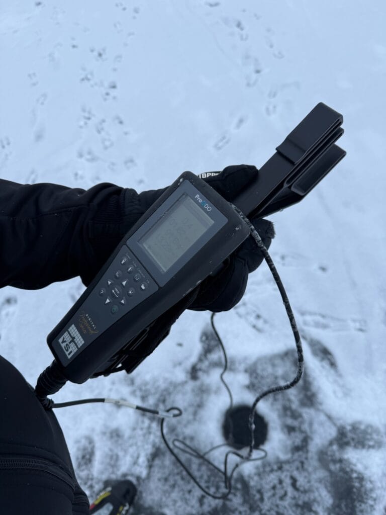 Littoistenjärven hoitokunnan nykyinen ja edellinen puheenjohtaja kävivät tekemässä järvellä happimittauksia viime sunnuntaina 25.1.2026.